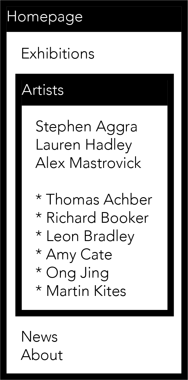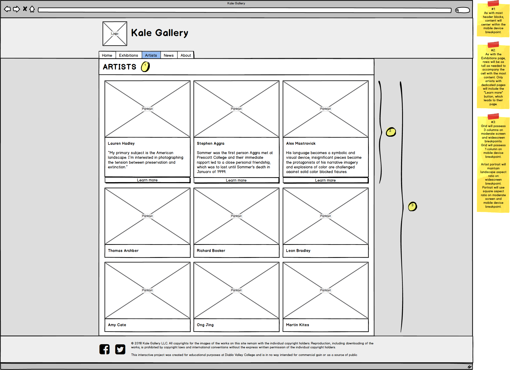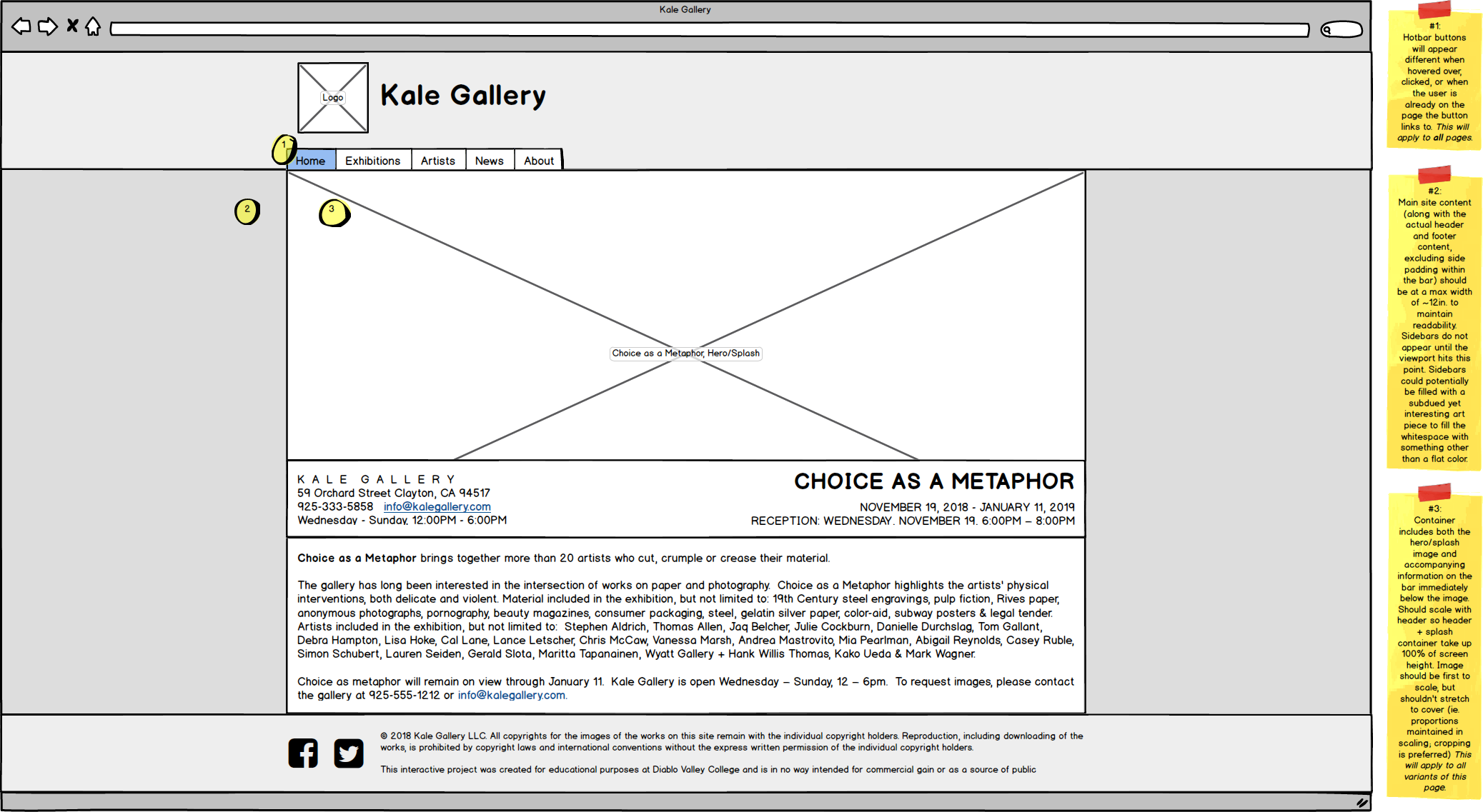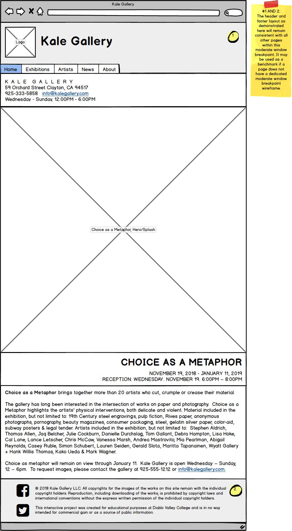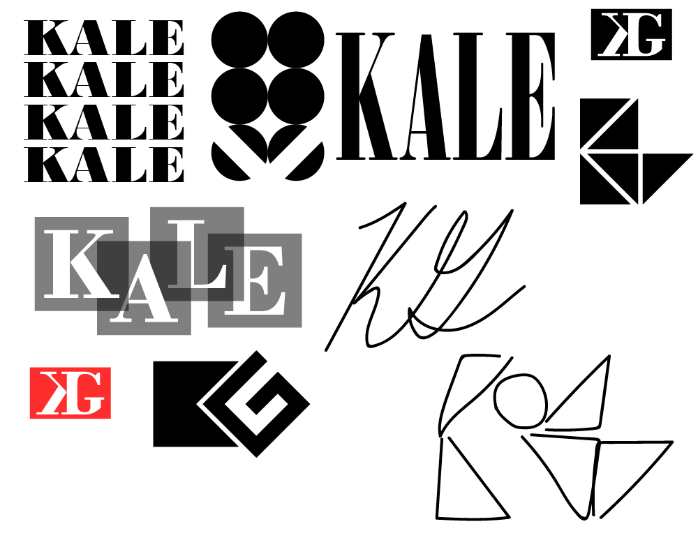 Given that no logo or branding for Kale Gallery was provided, I decided to have a go at designing it myself. I have a take of Kale Gallery to be an establishment much like MoMA or The Met, especially in its branding and aesthetic. It is professional and sleek, at times leaning on the academic. While the modern, at times avant-garde nature of Kale Gallery's work pushes the group to be particularly progressive or otherwise on the edge, its nature as a gallery establishment grounds the group to a dignified fashion.
